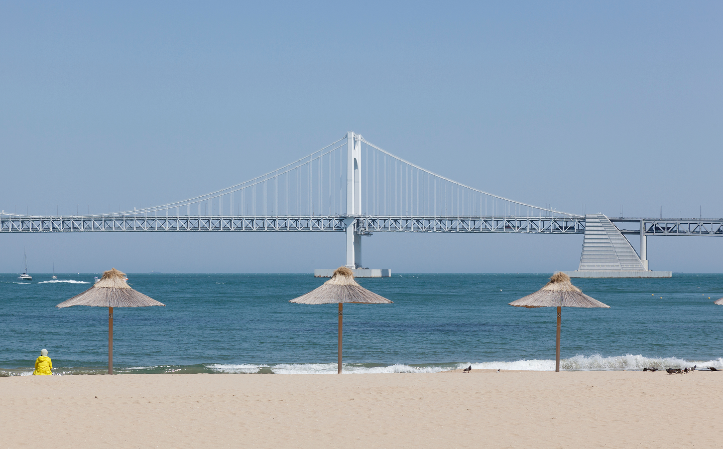 해질 무렵 광안대교가 붉게 물드는 순간,